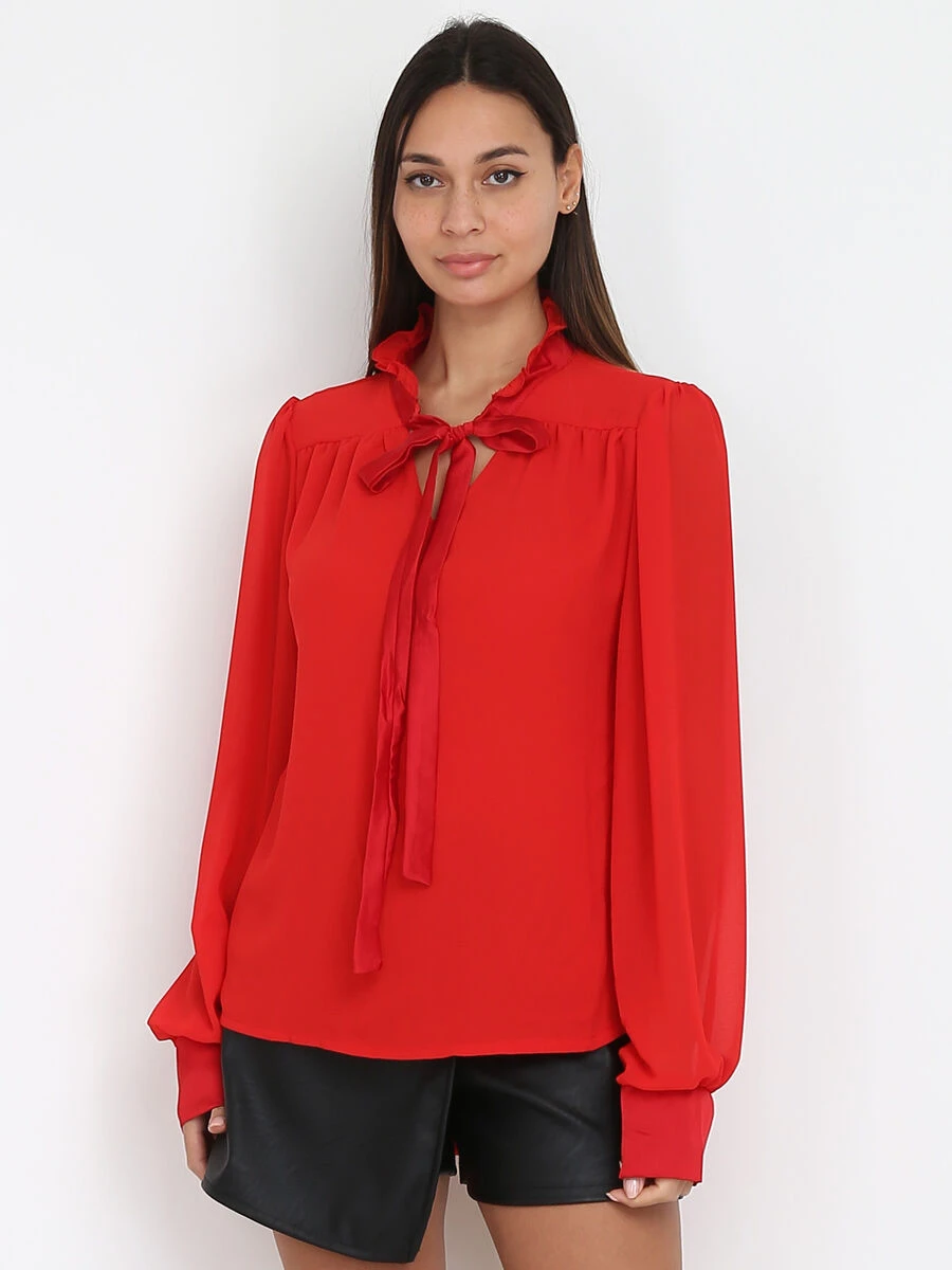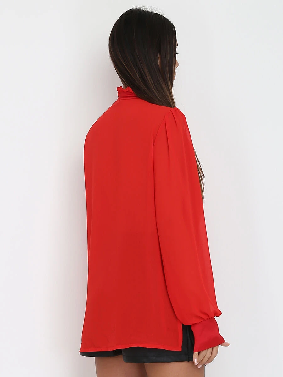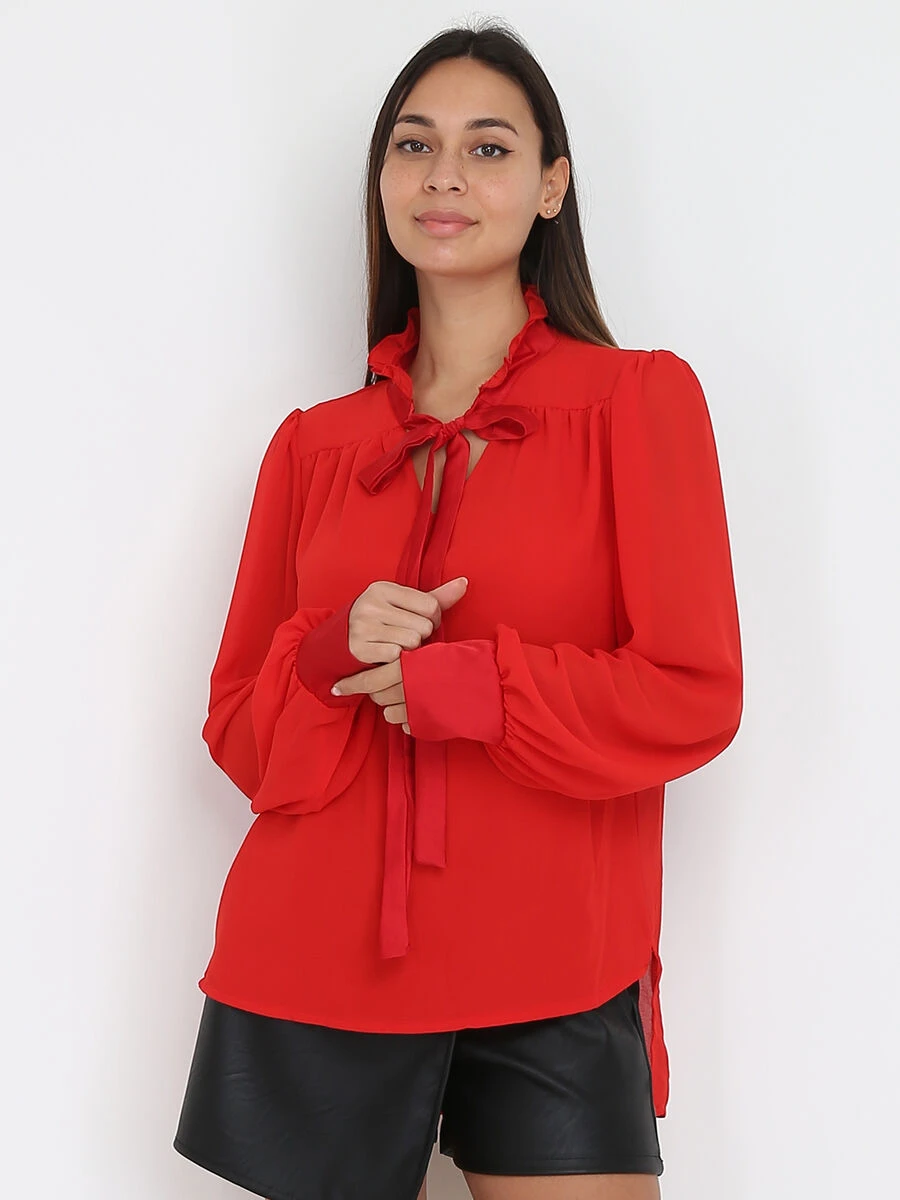 Blouse fluide avec volants sur le col légèrement asymétrique.