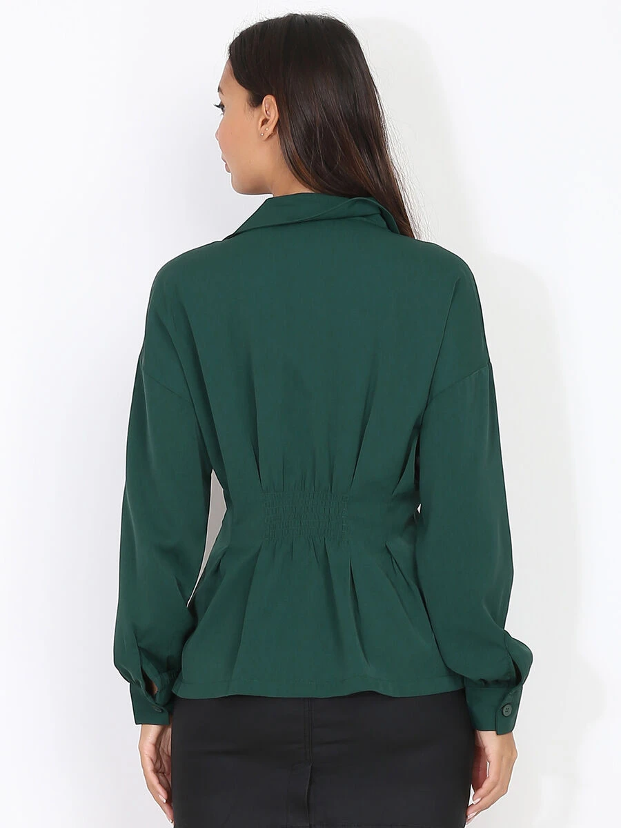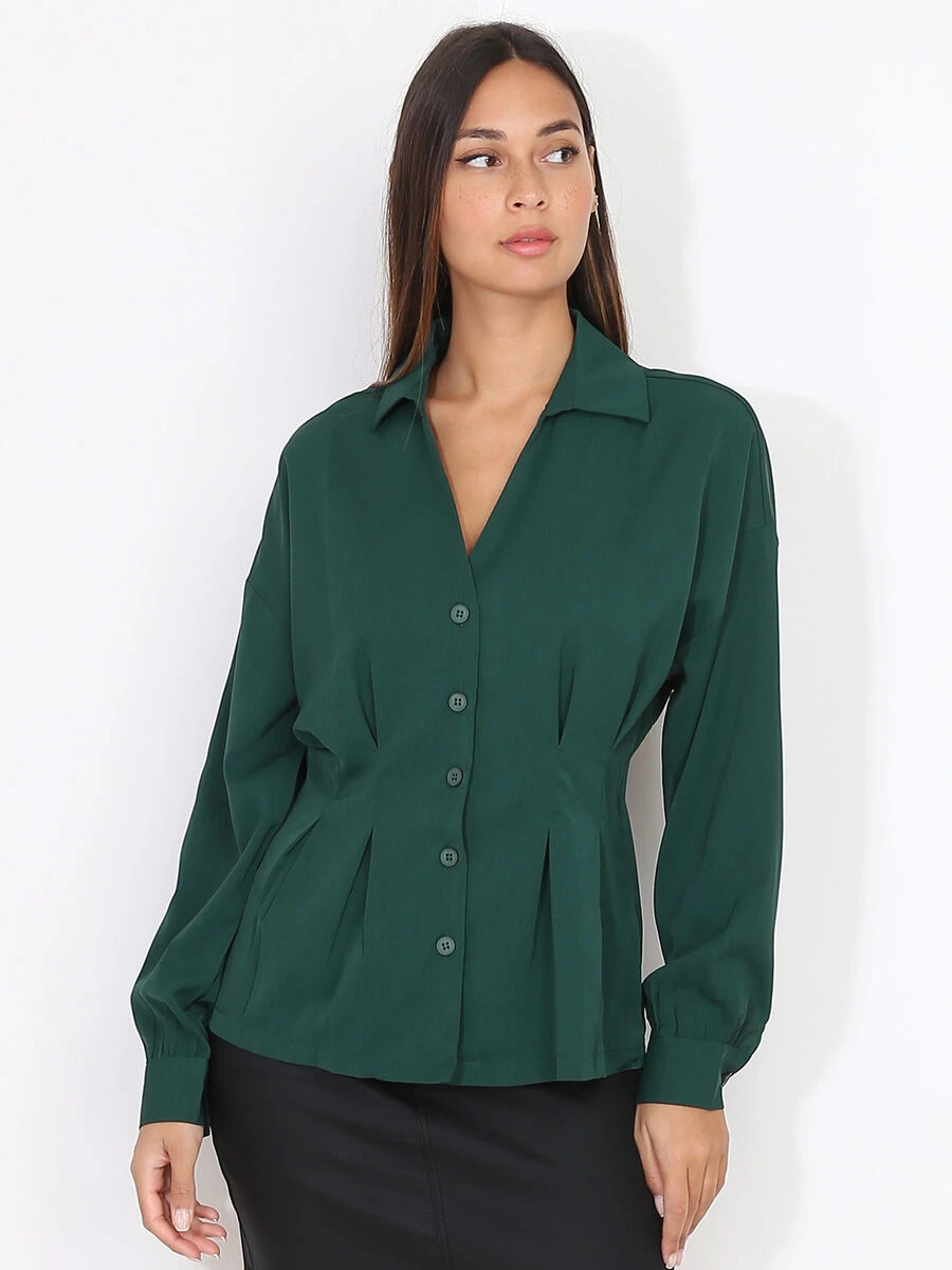 Chemise satinée, cintrée et évasée en bas grâce aux pinces à la taille.