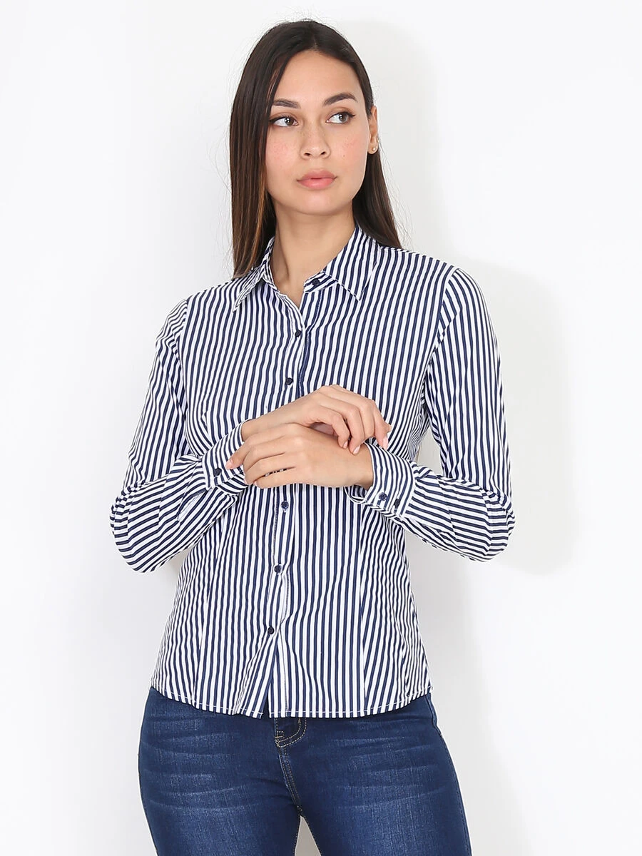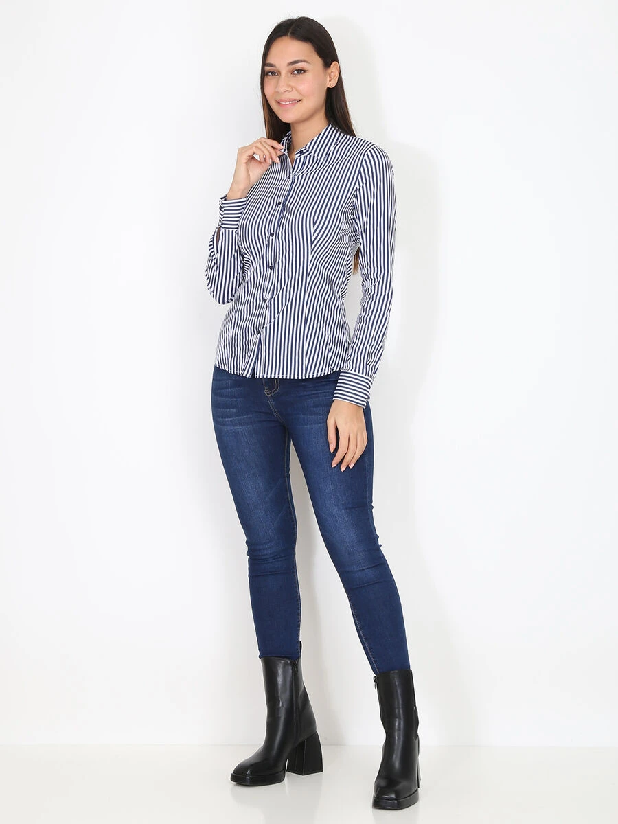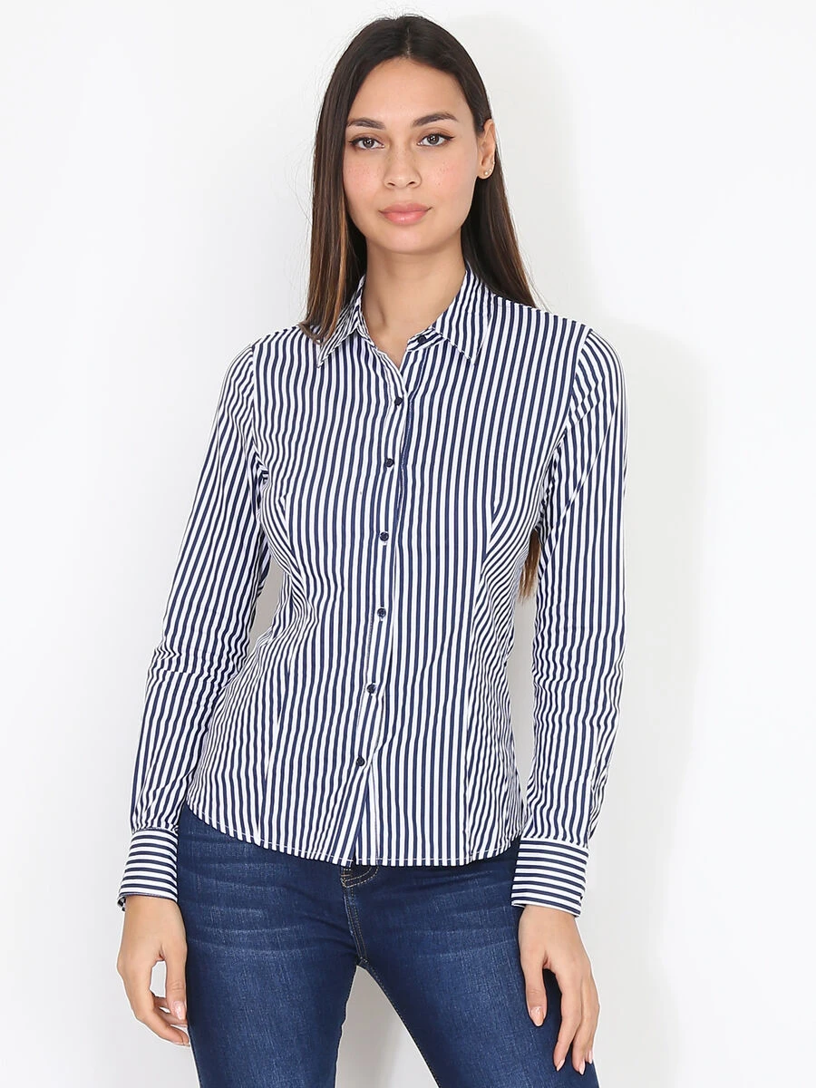 Chemise cintrée et rayée avec patte de boutonnage devant.