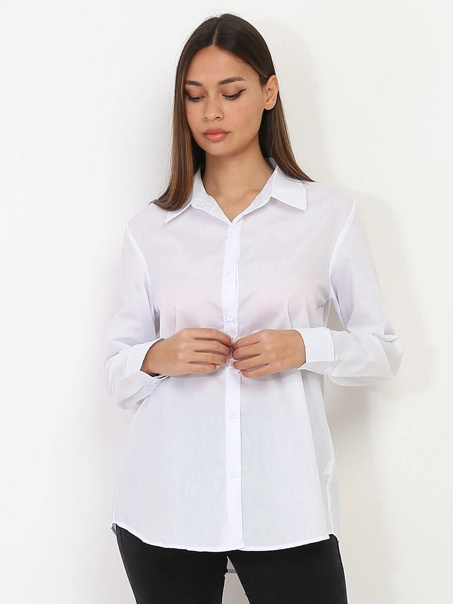 Col chemise avec patte de boutonnage.
