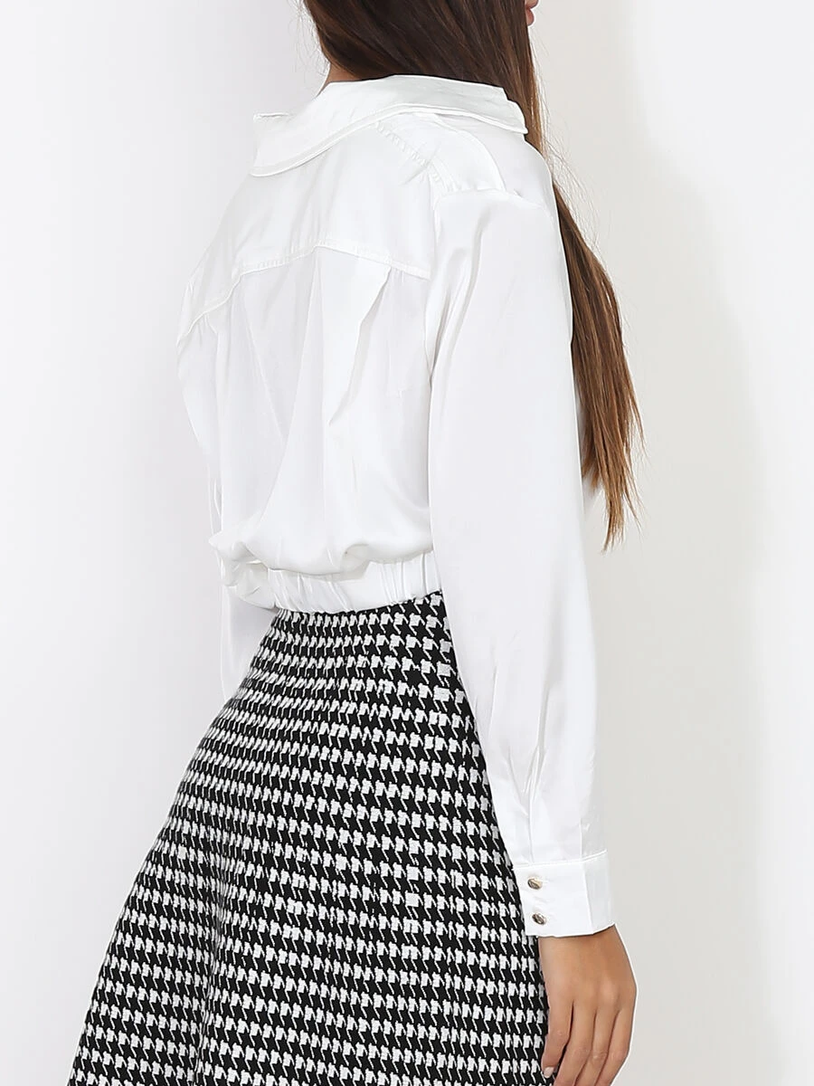 Chemisier court à col ouvert froncé en bas.