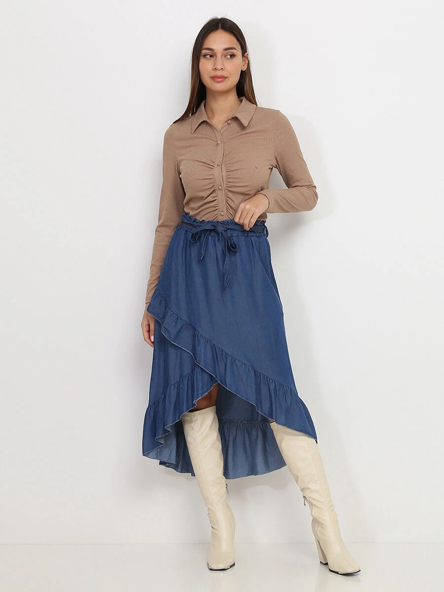 Chemisier moulant côtelé et froncé devant.
