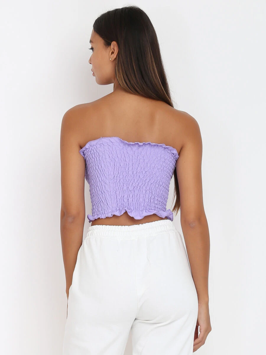 Top bandeau à porter avec un jeans ou un short taille haute.