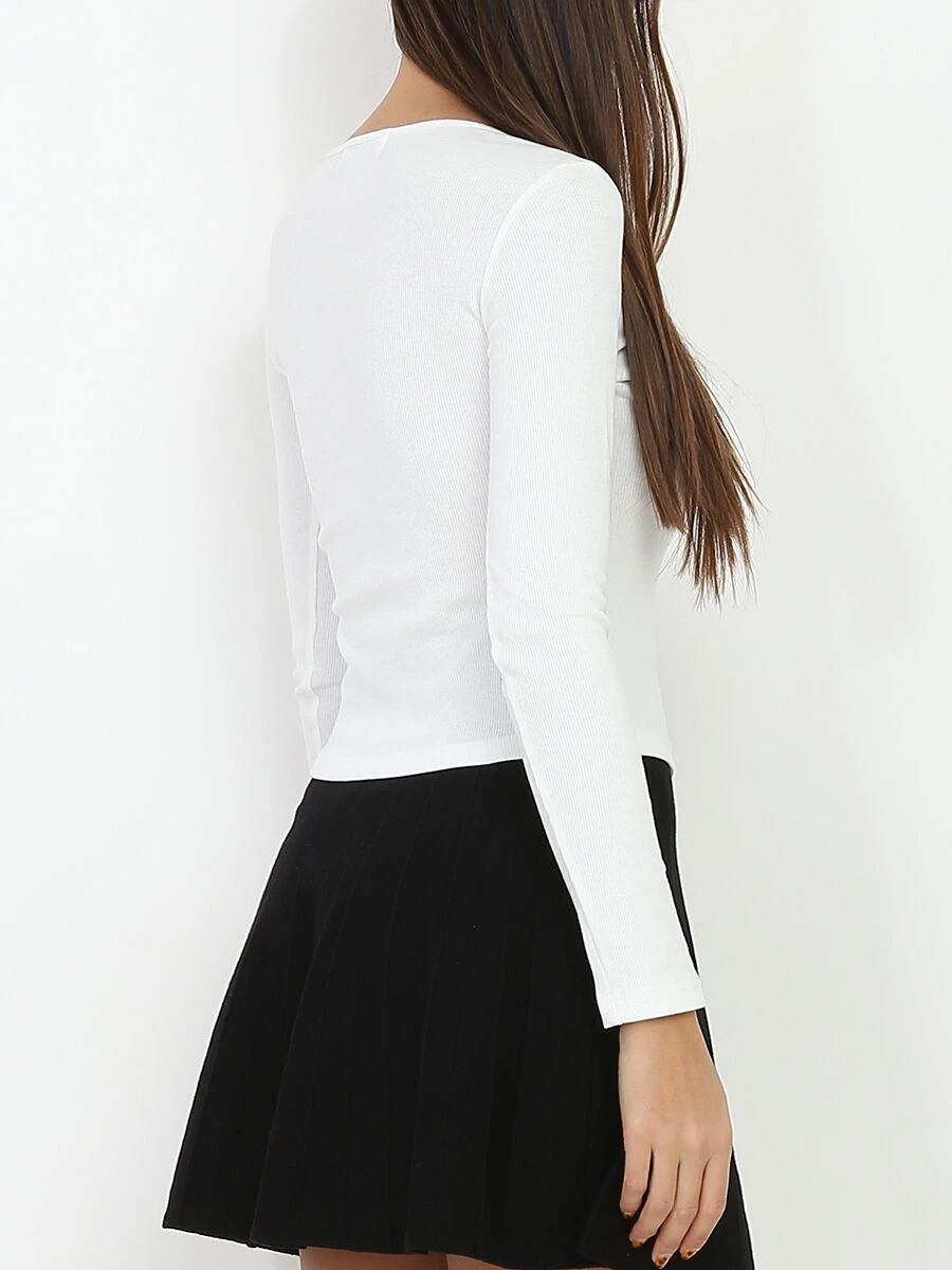 Crop top côtelé à manches longues.
