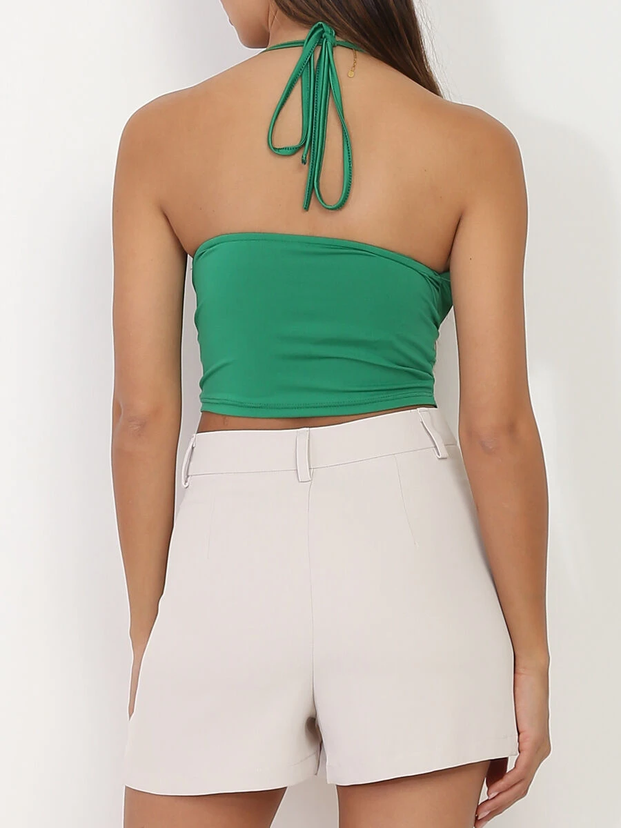 Doté de lanières à nouer à la nuque et de coussinets de maintien.