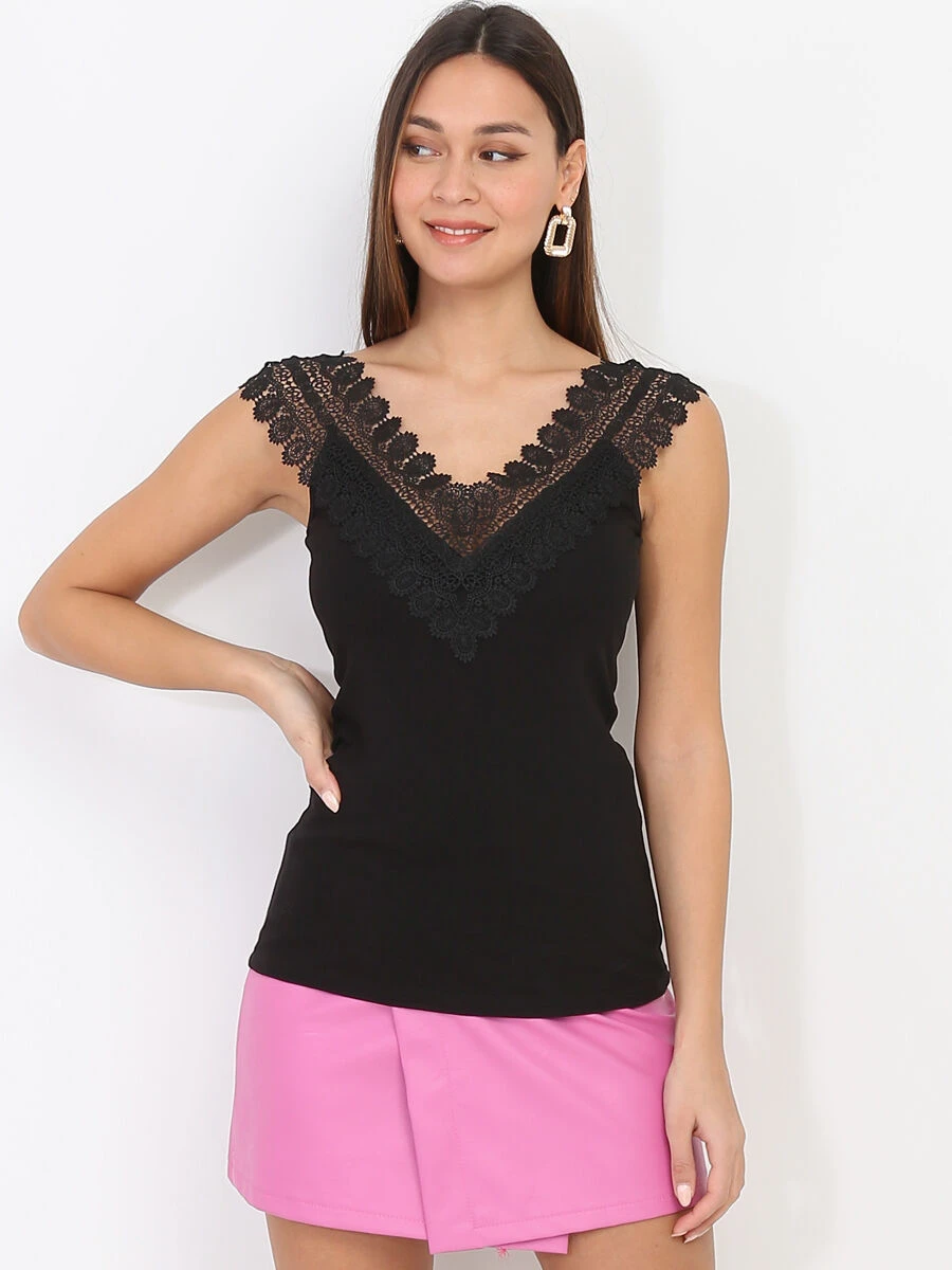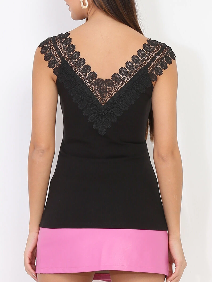 Débardeur uni à à dentelle sur col V au dos et à l’avant.