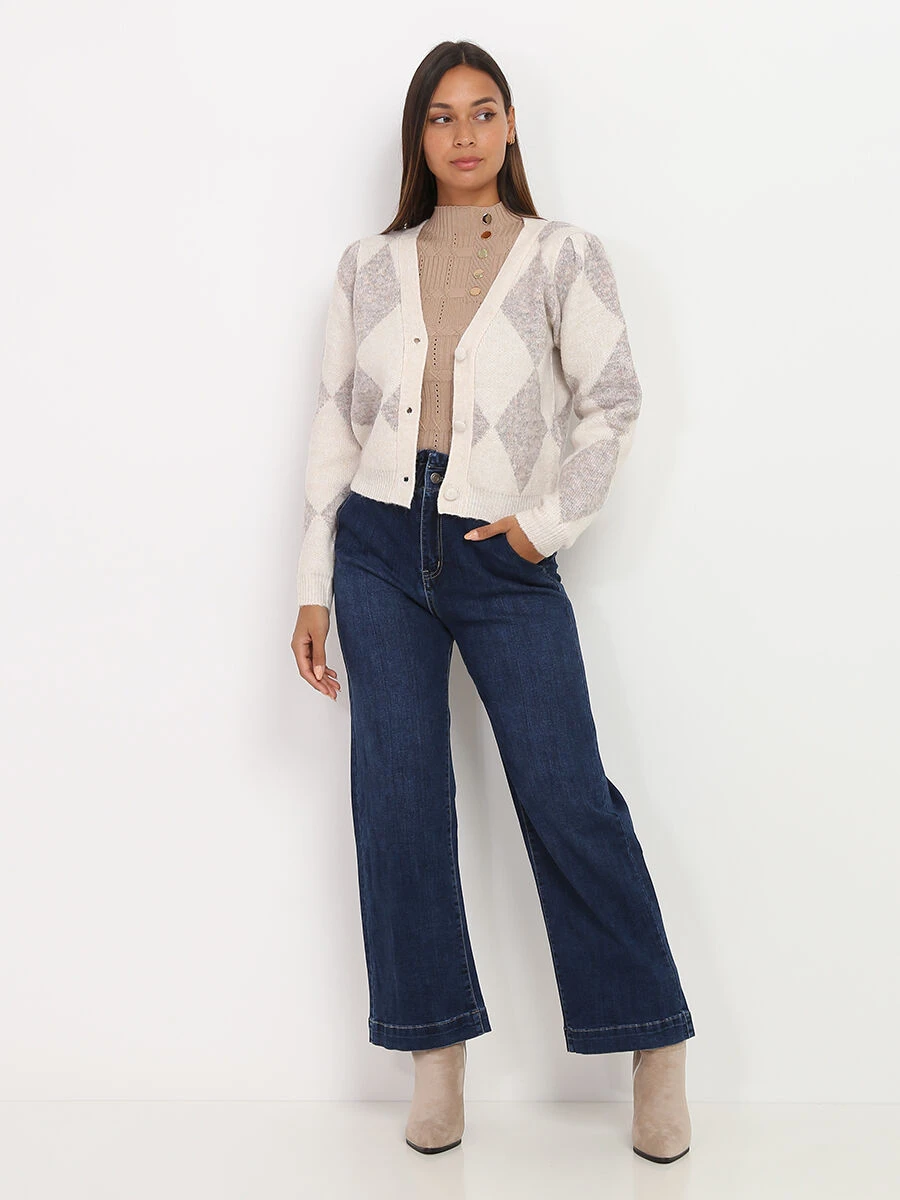 Gilet court à losanges.