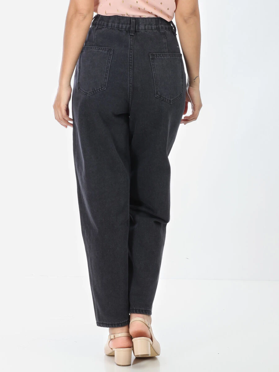 Jeans coupe large taille haute à boutons dorés.