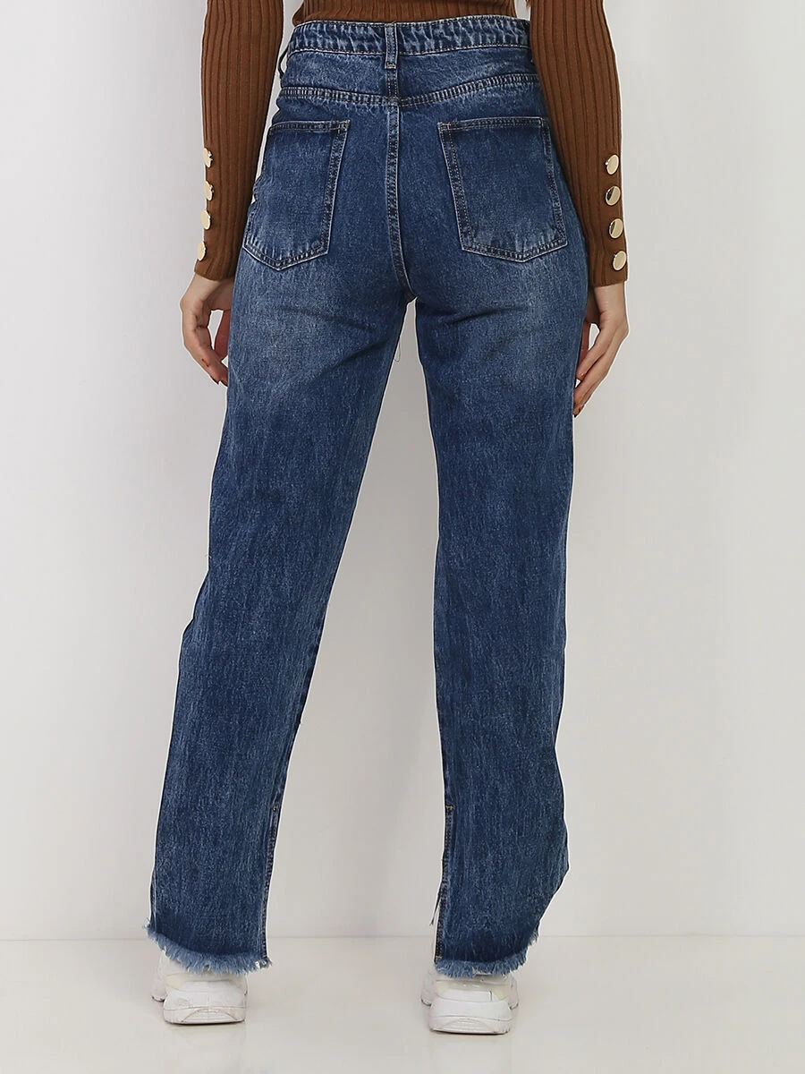 Modèle délavé avec fentes et effiloché aux chevilles.