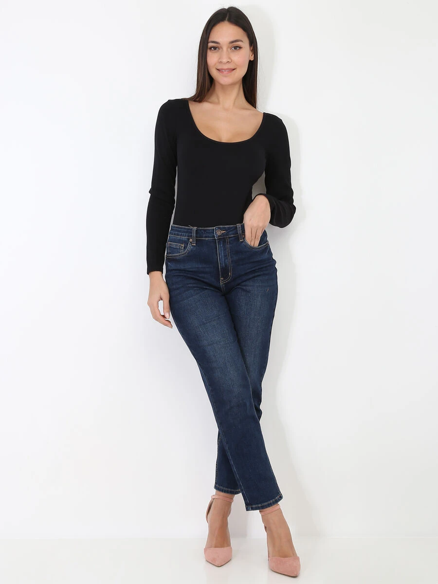 Jeans mom fuselé avec fermeture zippée et bouton.