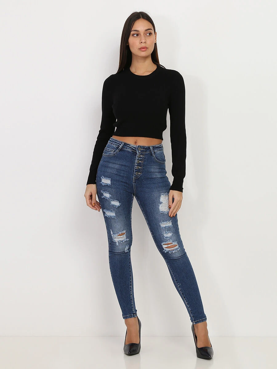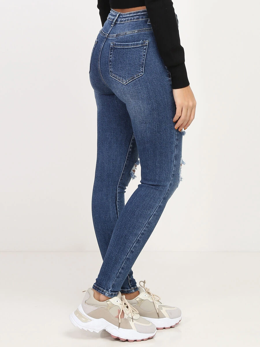 Jeans skinny destroy à taille haute.