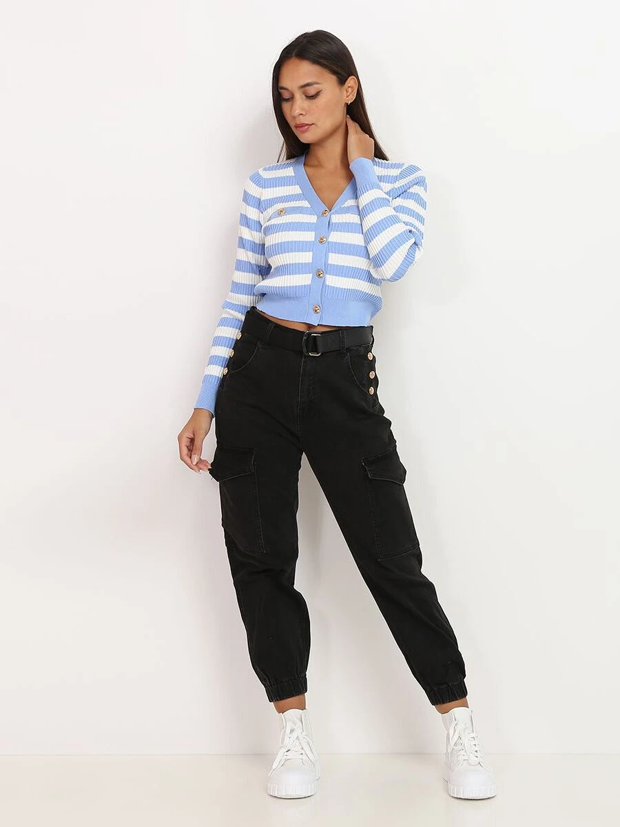 Modèle doté de 2 poches à rabat et 2 poches sur les côtés à l’avant, ainsi que de 2 poches arrière.