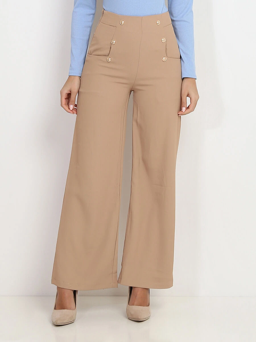 Pantalon évasé à taille haute avec 6 boutons officier dorés.