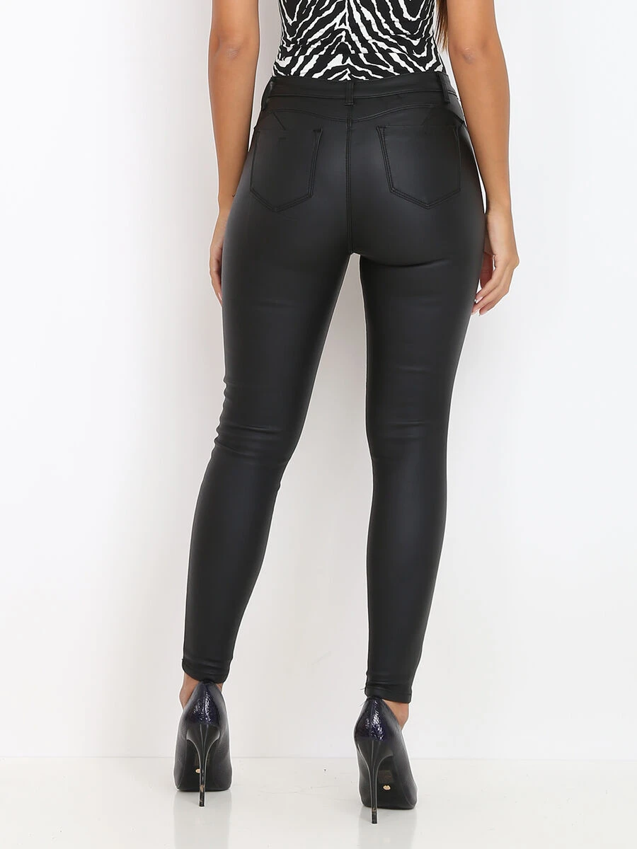 Pantalon coupe skinny en matière enduite style simili cuir.