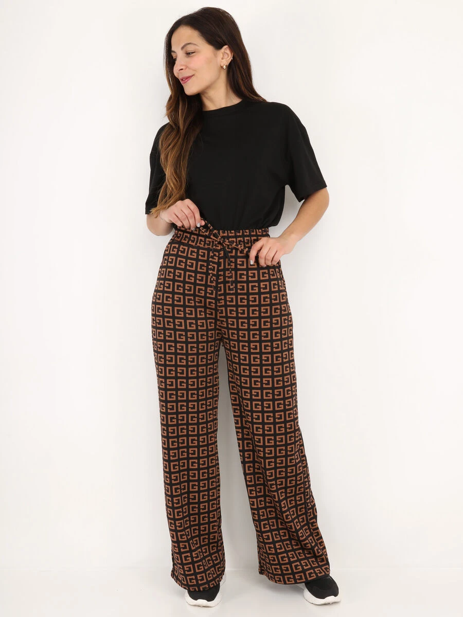 Pantalon palazzo à motif lettres G avec deux poches.