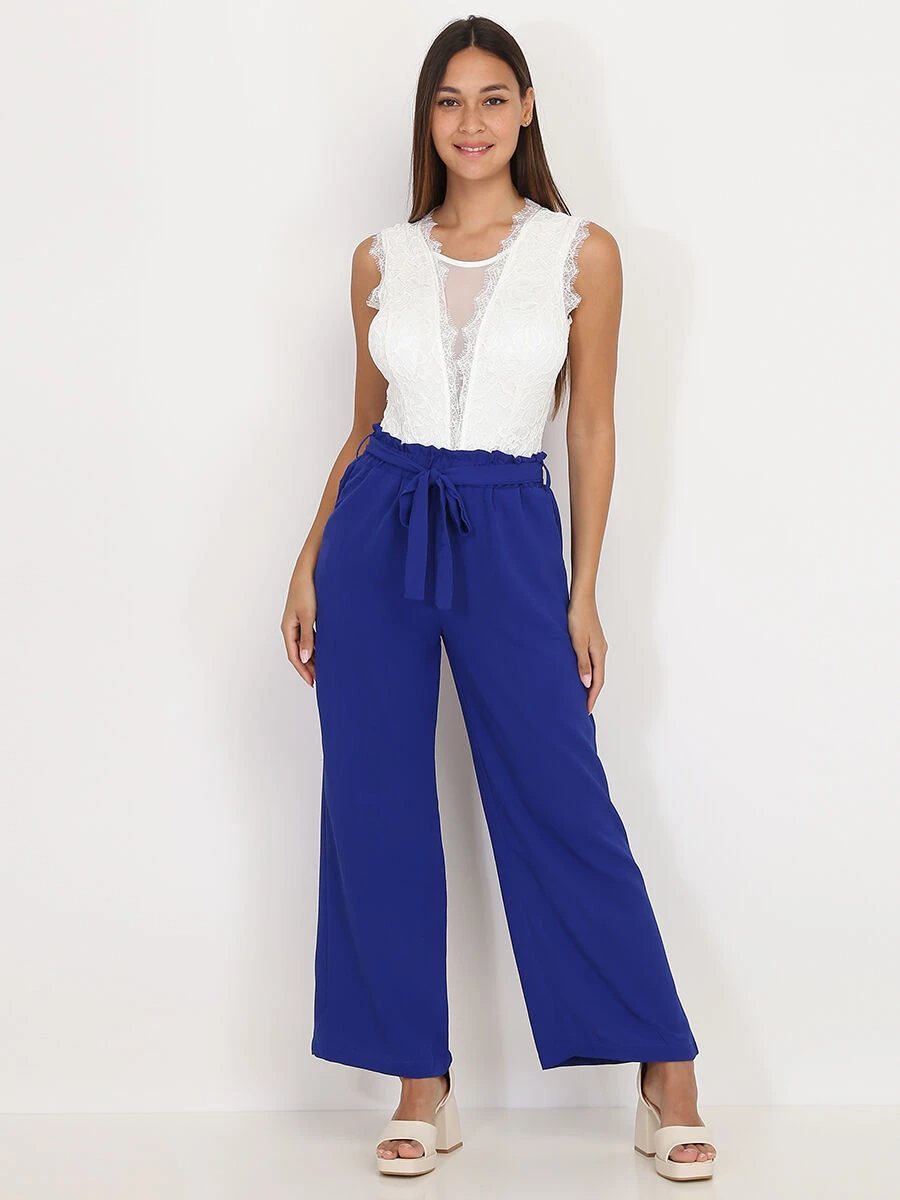 Pantalon palazzo avec ceinture Ă nouer Ă la taille.