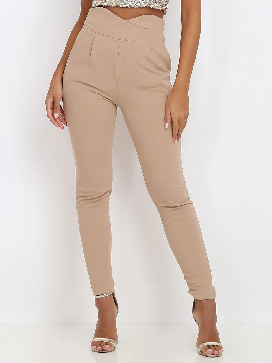 Pantalon à pinces coupe carotte à taille haute en forme de coeur