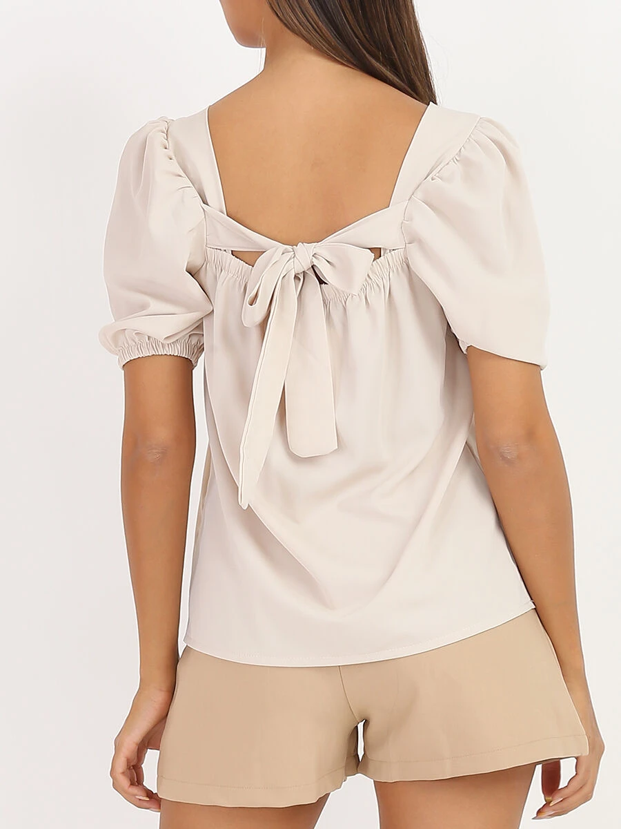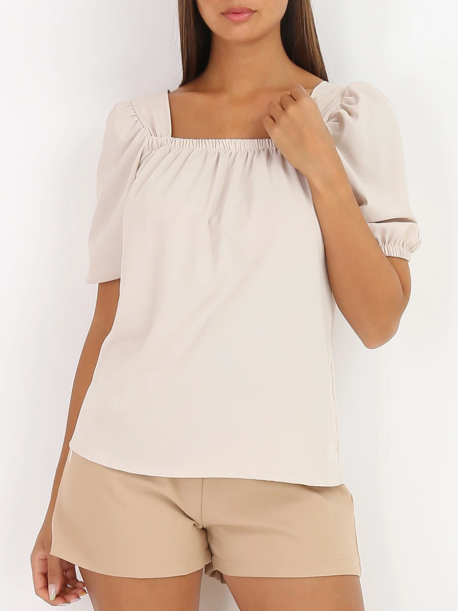 Top à col carré et manches courtes bouffantes.