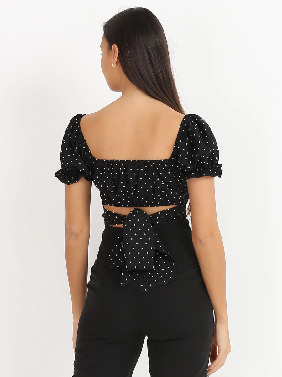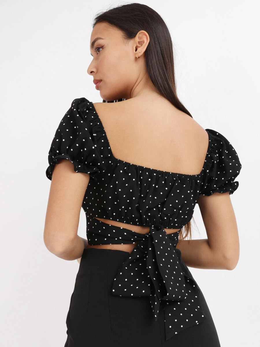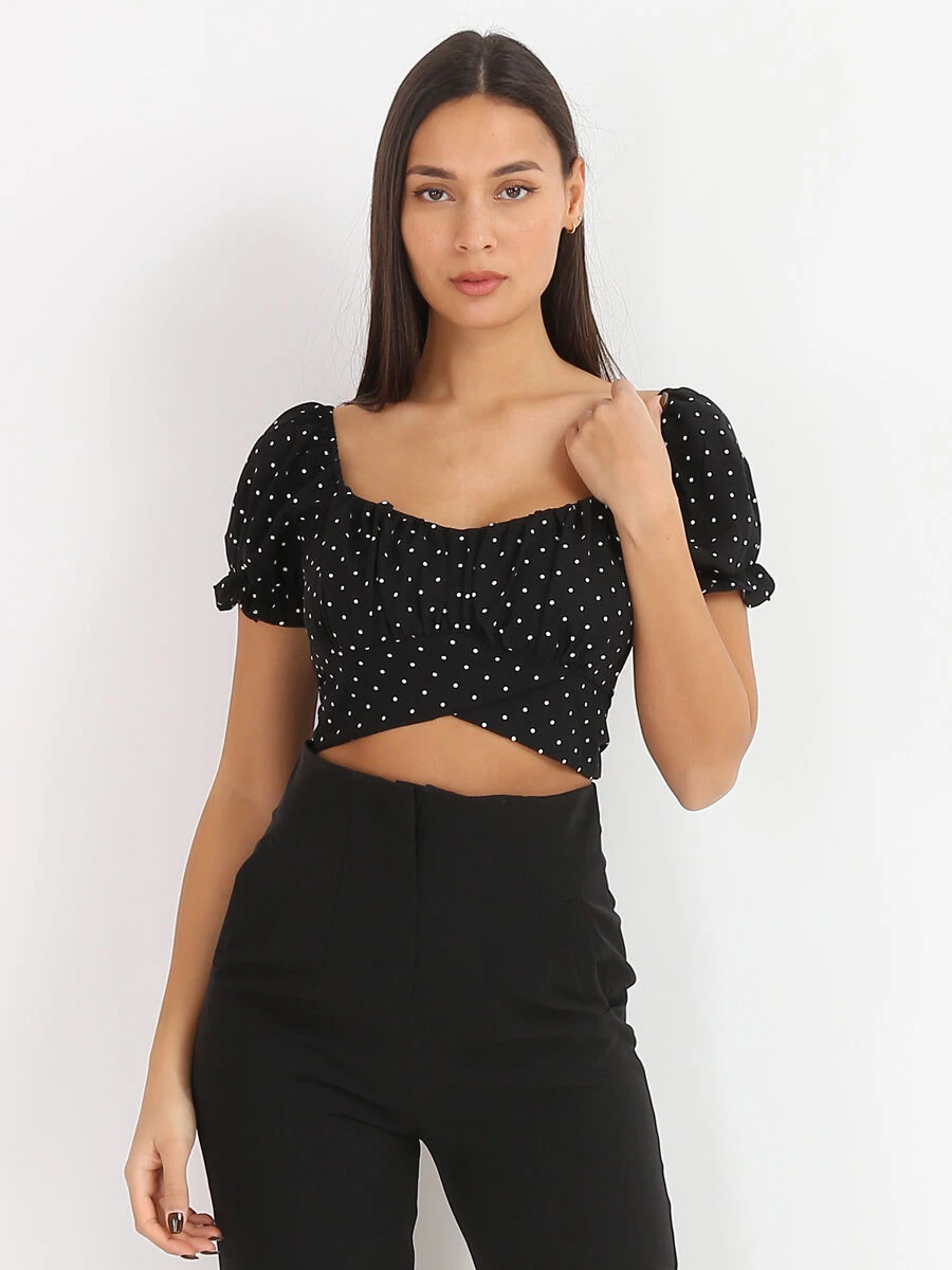 Top court froncé à imprimé pois.